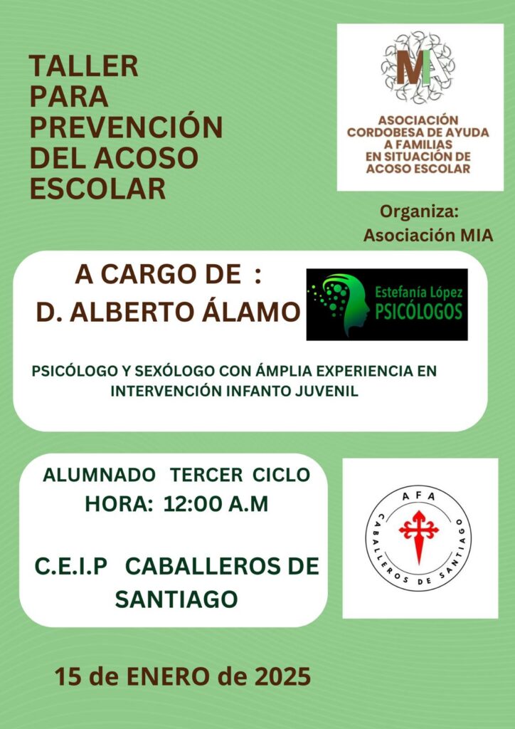 El próximo 15 de noviembre estaremos en colaboración con FAMPA Córdoba, realizando una jornadas formativas contra el acolo escolar. Puedes apuntarte aquí Aquí puedes ver la charla completa.